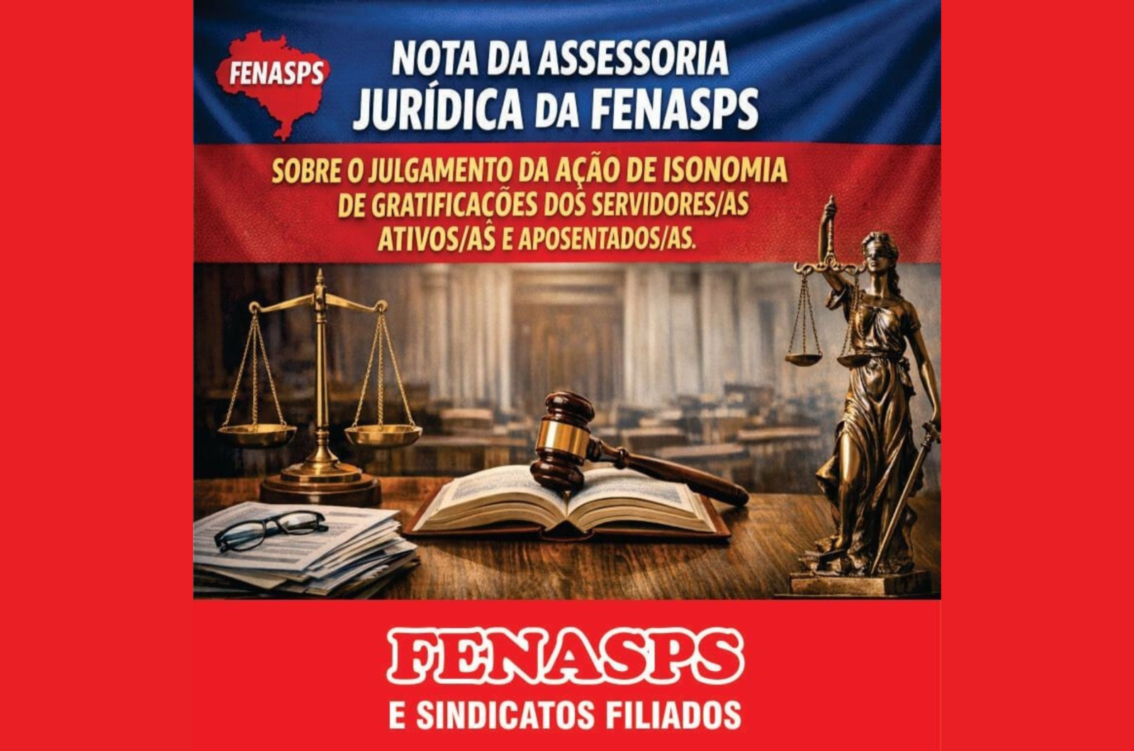 Nota da assessoria jurídica da FENASPS sobre o julgamento da ação de isonomia de gratificações dos servidores/as ativos/as e aposentados/as