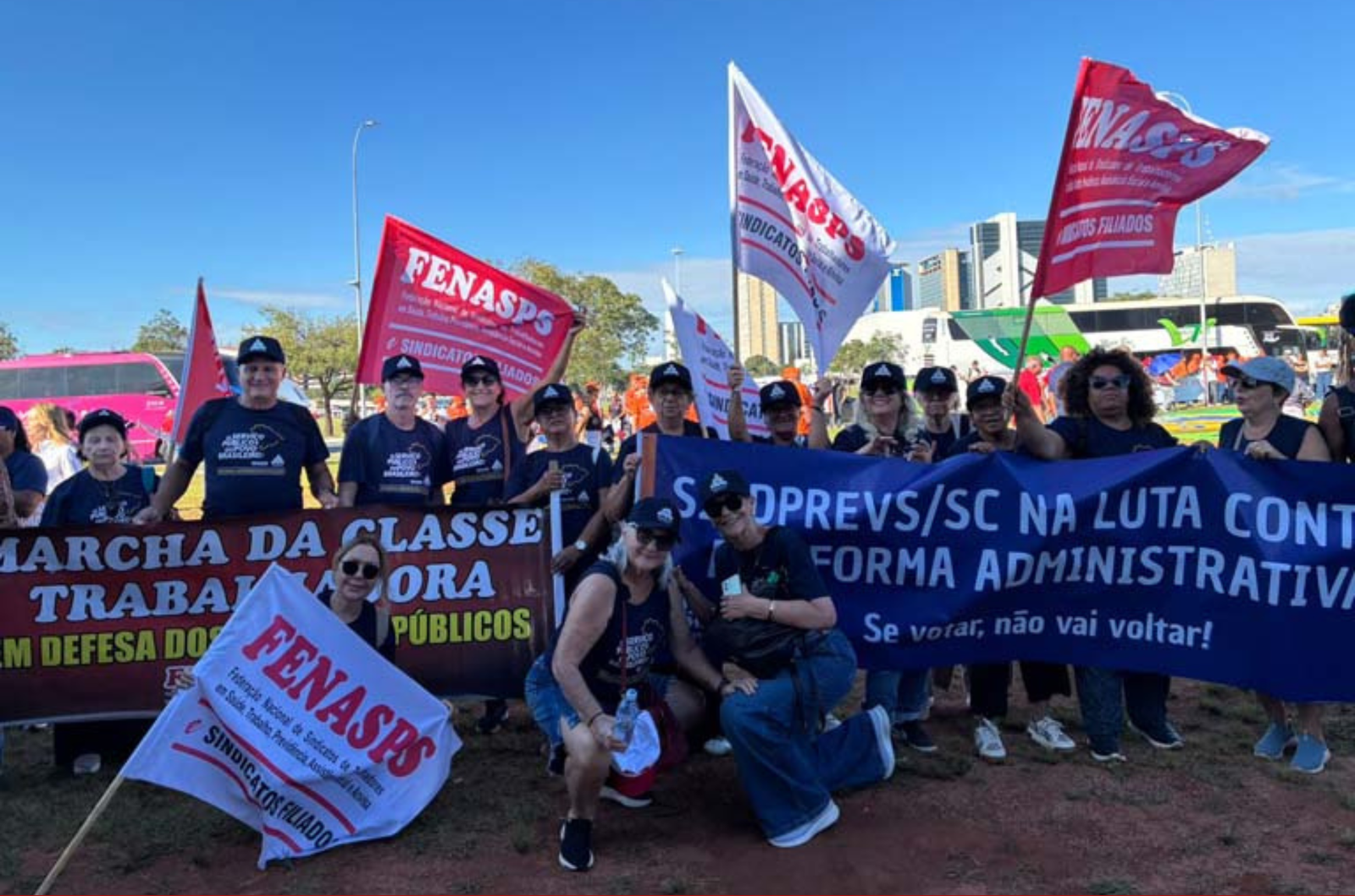 Representantes da FENASPS e sindicatos da base presente na marcha nacional da classe trabalhadora em Brasília 15/04