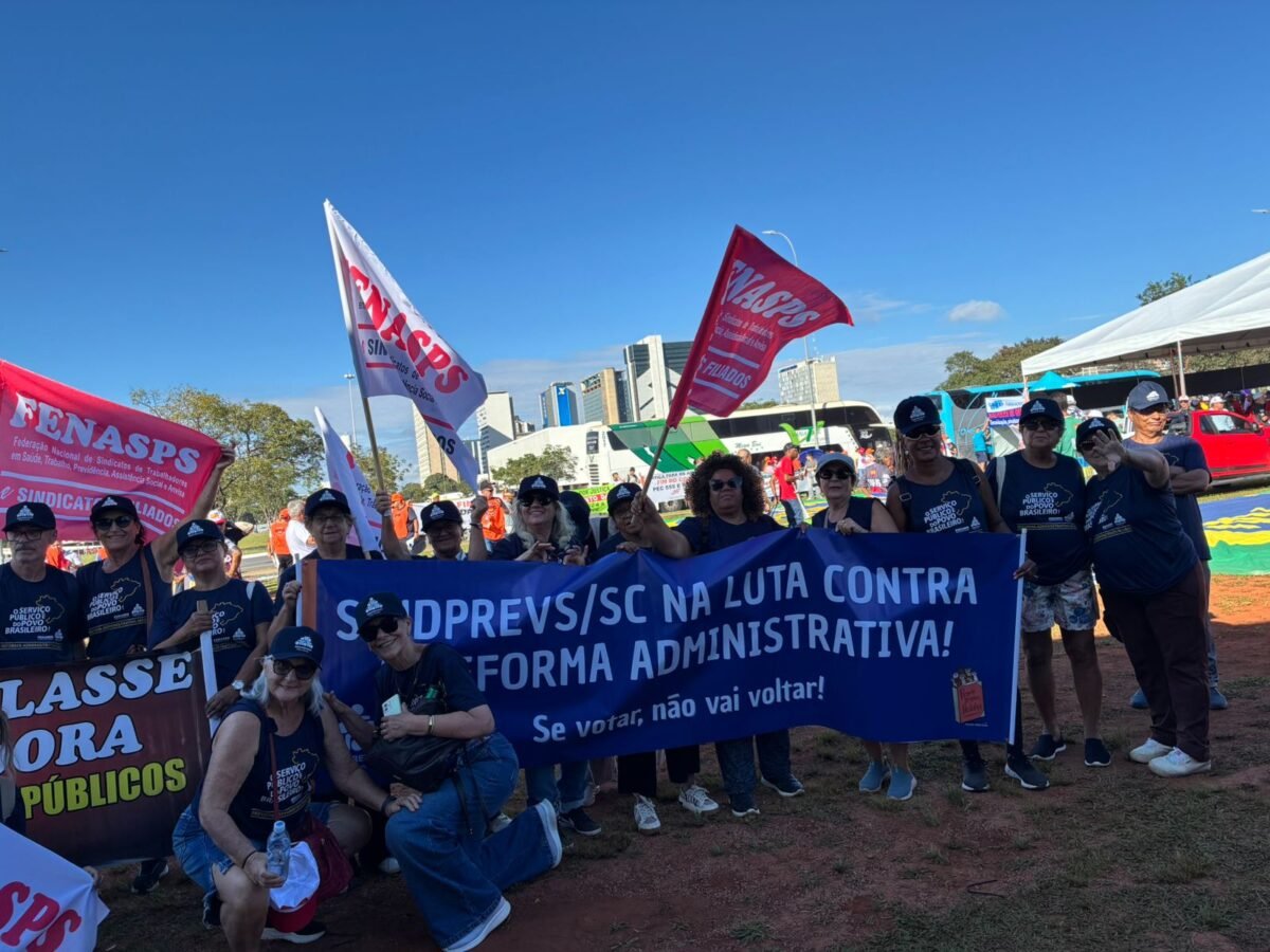 Representantes da FENASPS e sindicatos da base presente na marcha nacional da classe trabalhadora em Brasília 15/04