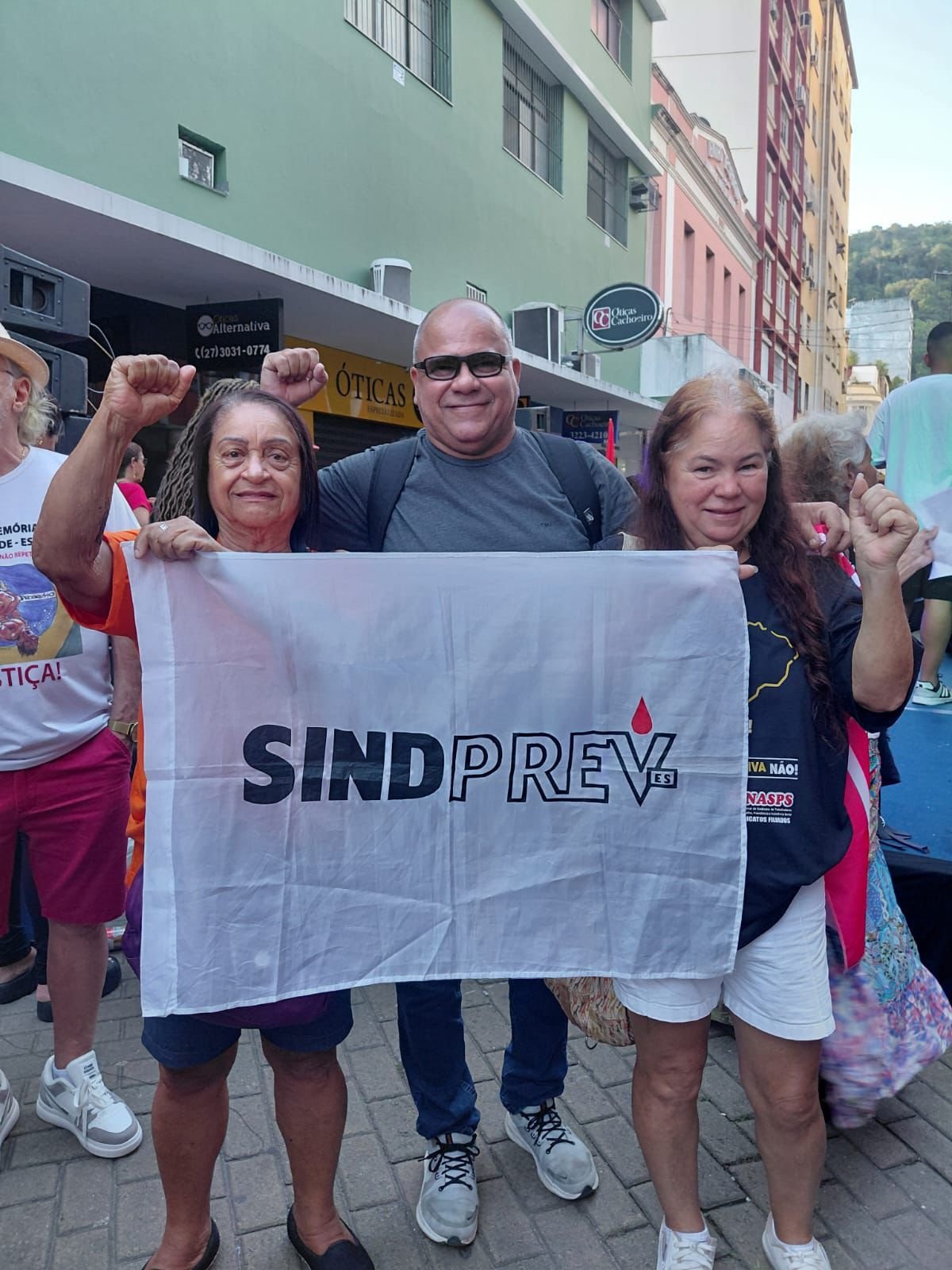 O Sindprev-ES esteve presente, na quarta-feira (8), no ato em defesa da democracia e da soberania nacional, realizado no Centro de Vitória A atividade reuniu entidades sindicais, movimentos sociais e a população, na defesa do Estado Democrático de Direito e em memória aos ataques golpistas de 8 de janeiro de 2023.